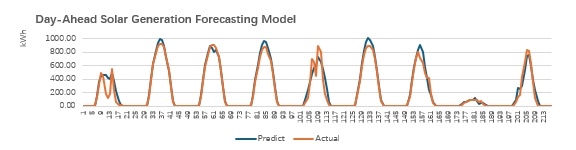 At 8 a.m. every day, the solar power generation model predicts the solar power generation every 30 minutes for the next two days and performs regression tests using actual power generation data.