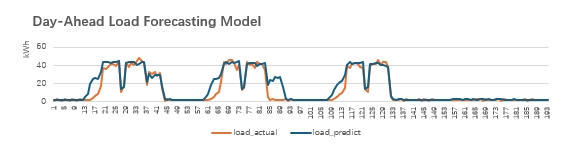 At 8 a.m. every day, we use the day-ahead load forecasting model to predict the load every 30 minutes for the next two days and perform regression testing using actual load data.